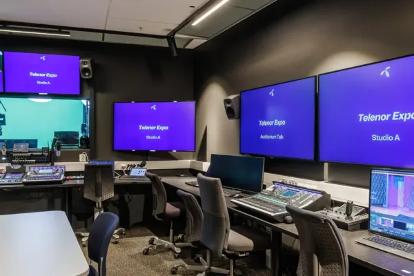 Studio A Broadcasting and recording studio for 1-5 persons with green screen. Separate production room. Expo level 4…