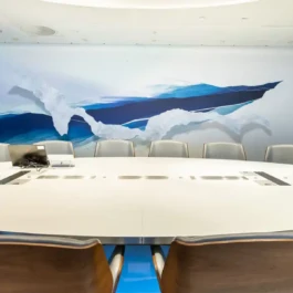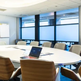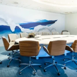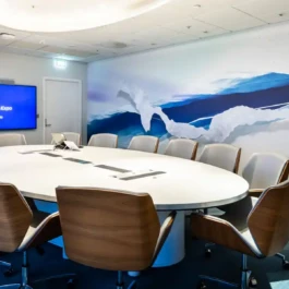 Meeting room with round table seating 14 persons, oval table. Nordic atmosphere. Bright and cheerful with picturesque view of the Oslofjord and Norwegian countryside.