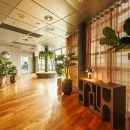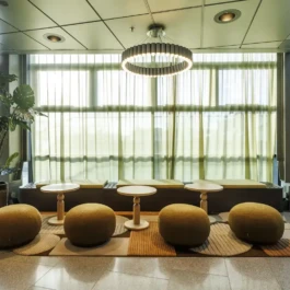 Meeting room seating 12 persons, with Asian décor. Daylight and a pleasant Asian atmosphere.